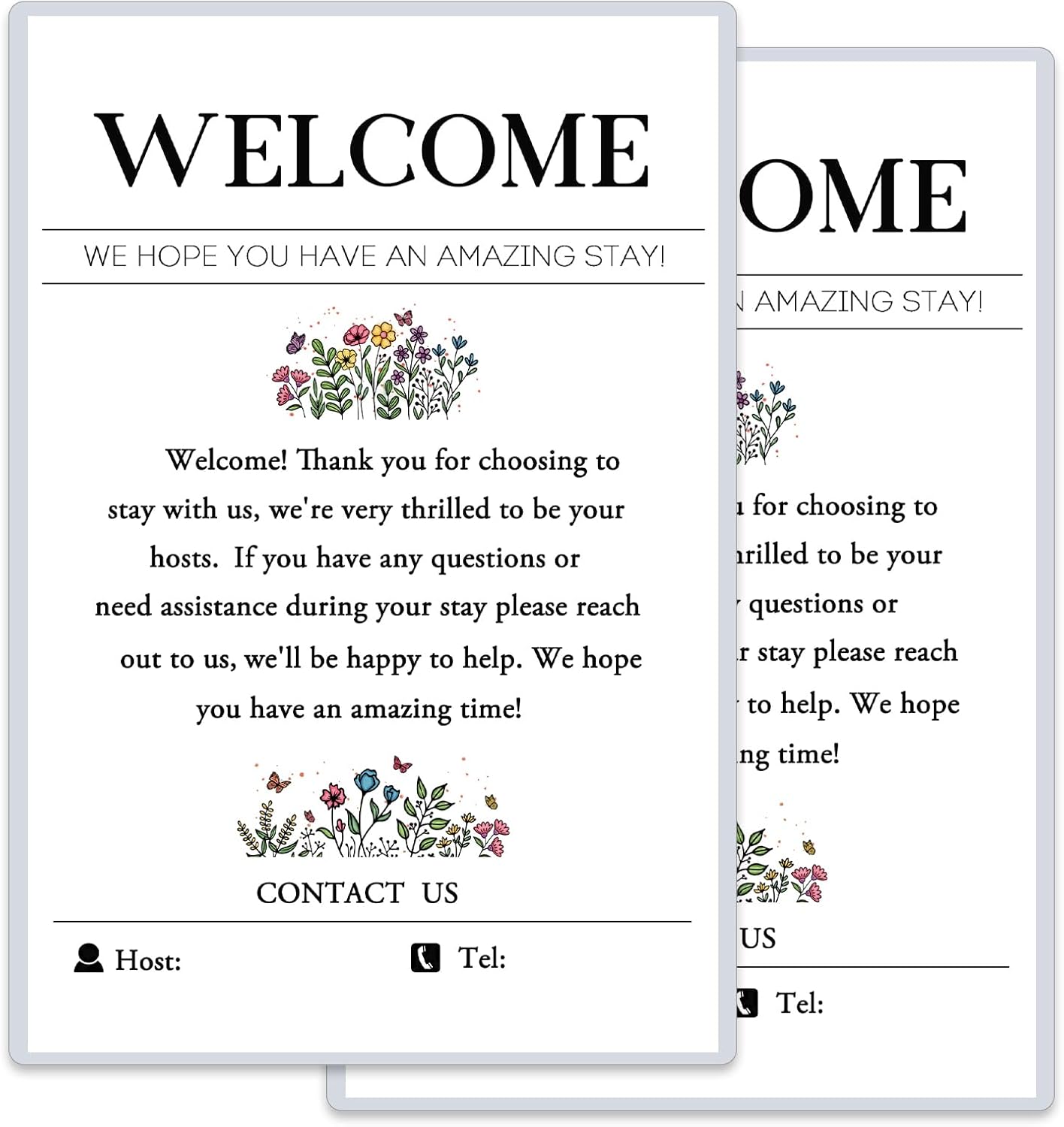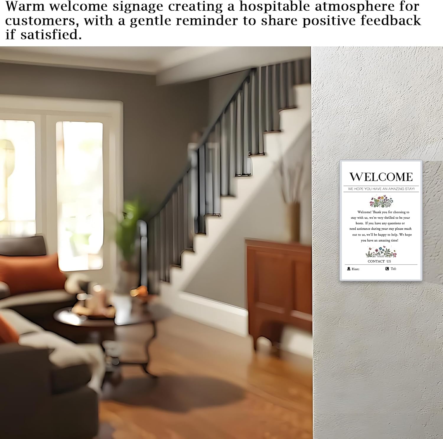 2 Pack Welcome Sign for Air BnB Hosts, Feedback Supplies for Vacation Rental Guest Rooms, Air BnB Essential VRBO Short-Term Rentals Executive Suites, Hotels(4″ x 6″)