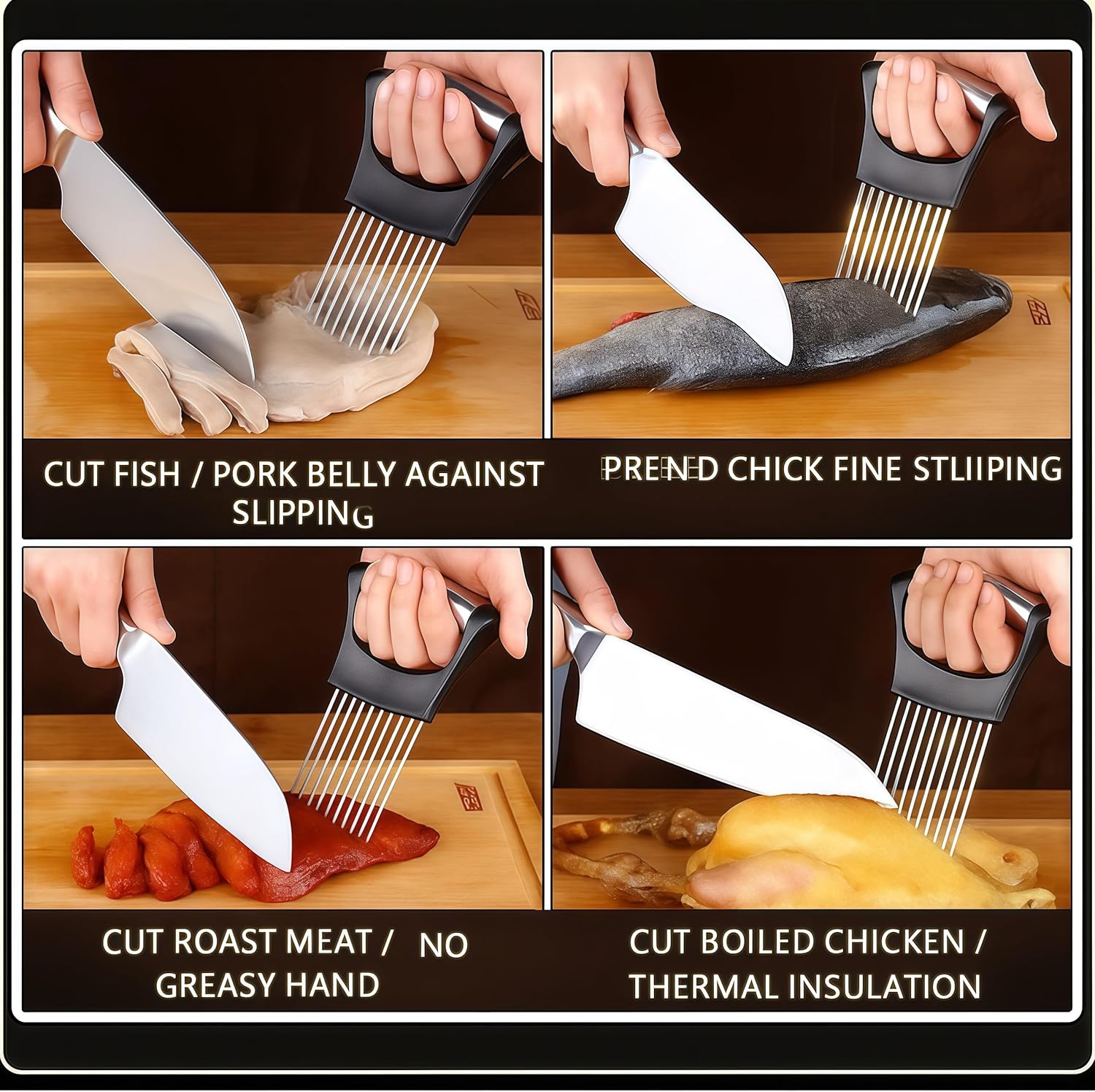 2025 Upgraded Onion Slicer, Onion Holder Chopper for Slicing, Chopper Slicer Assistant Tool, Cutter for Slicing of Meat, Potato, Tomato Kitchen Gadgets (1, Black)