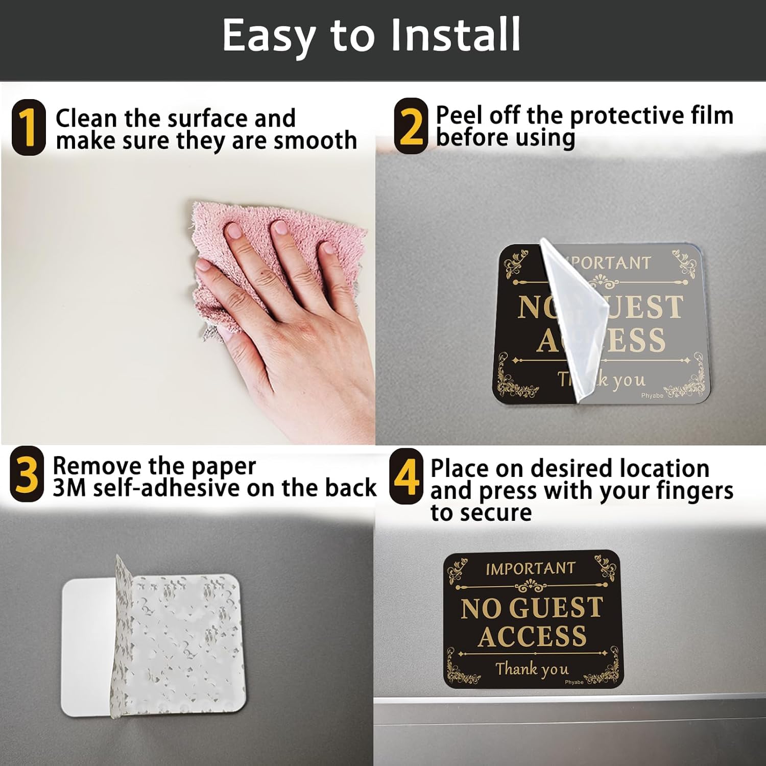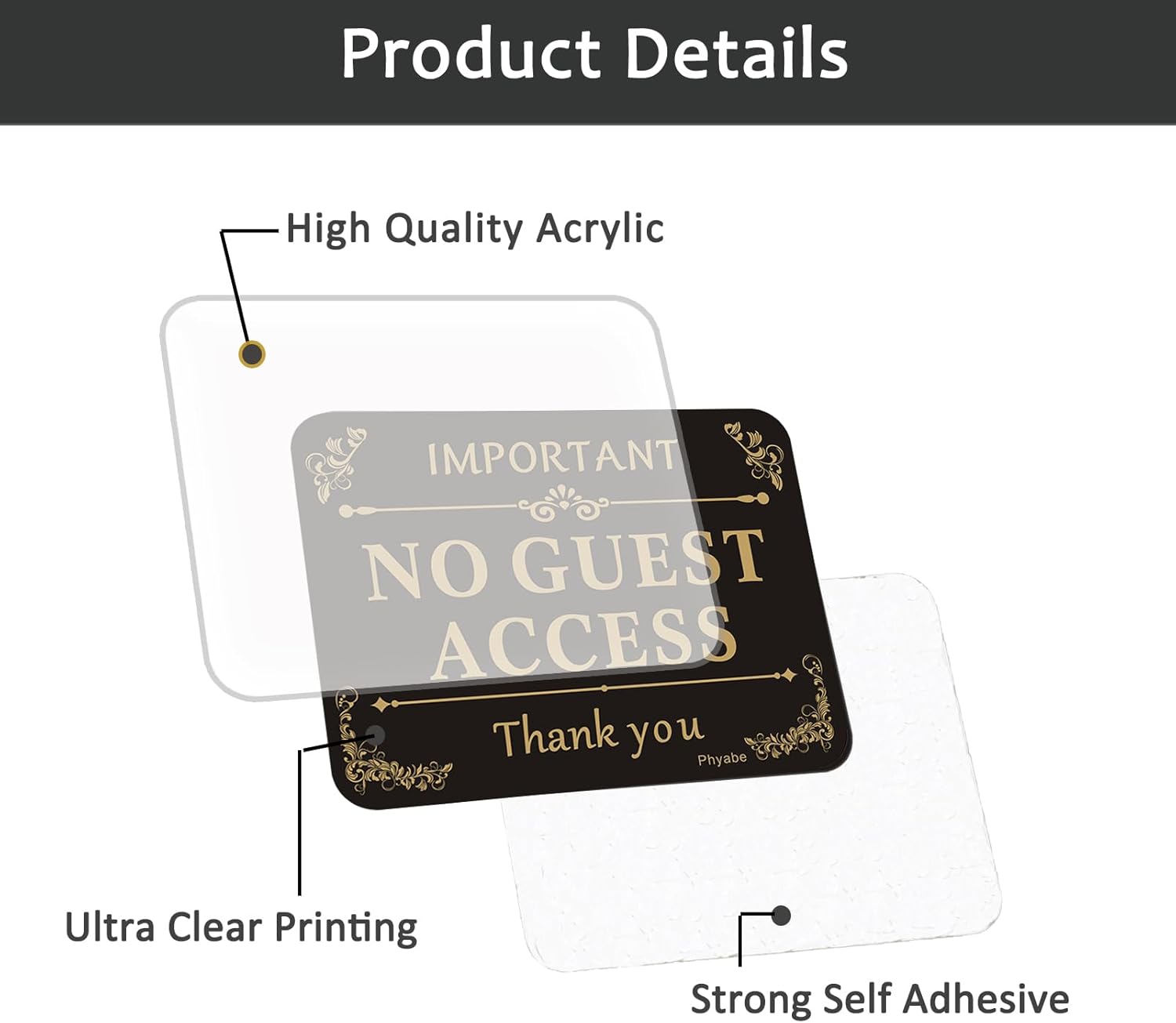 4 PCS No Guest Access Sign, 5” x 4” Thick Acrylic Self-Adhesive Sign, Ideal for Restaurants, Bars, Hotels, and Airbnb, Easy to Install