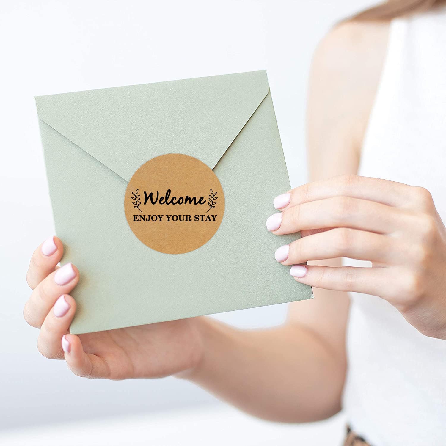 500 PCS Welcome Hotel Guest Kraft Paper Stickers Welcome Enjoy Your Stay Stickers Hotel Key Card Envelope Seals for Welcoming Guests and Decorating