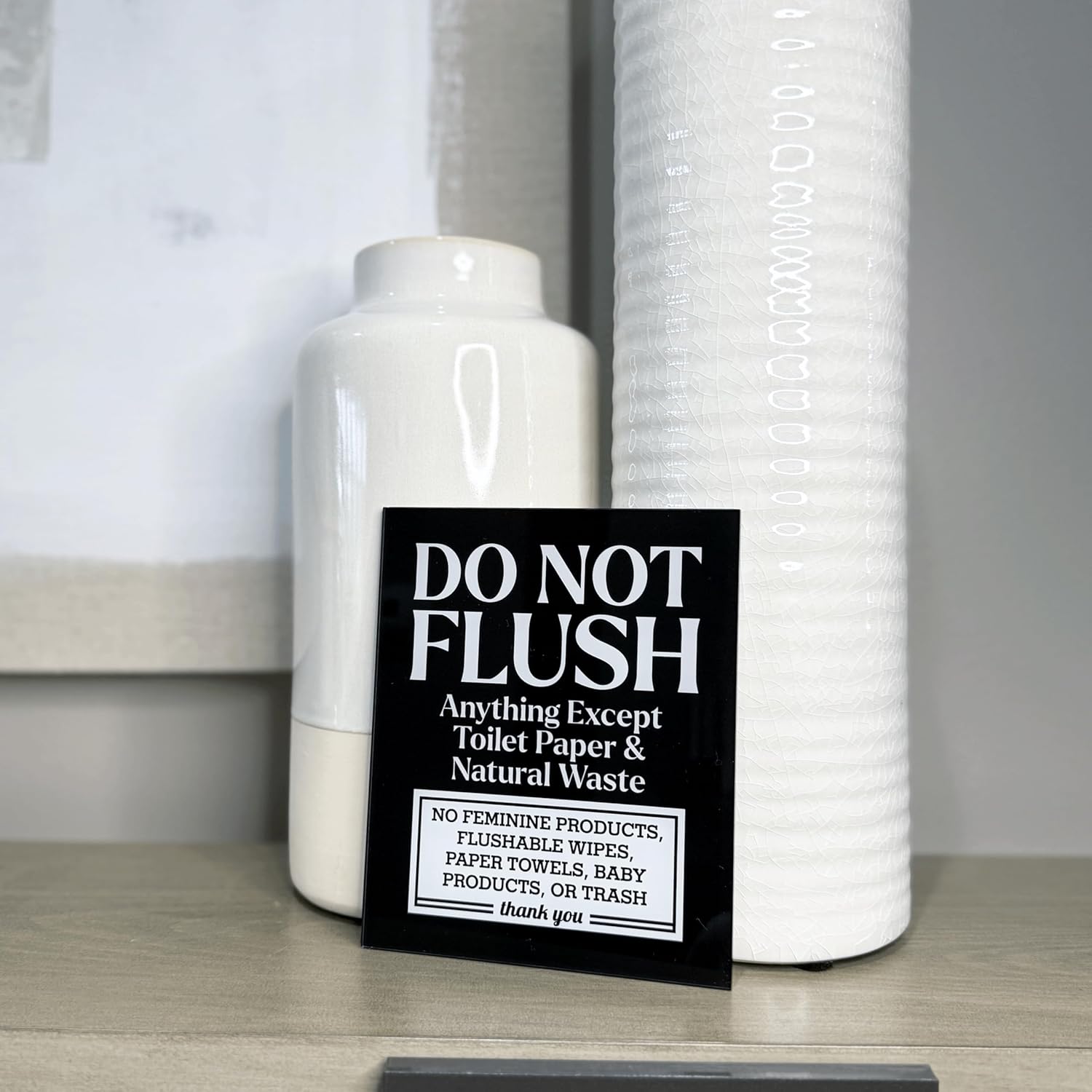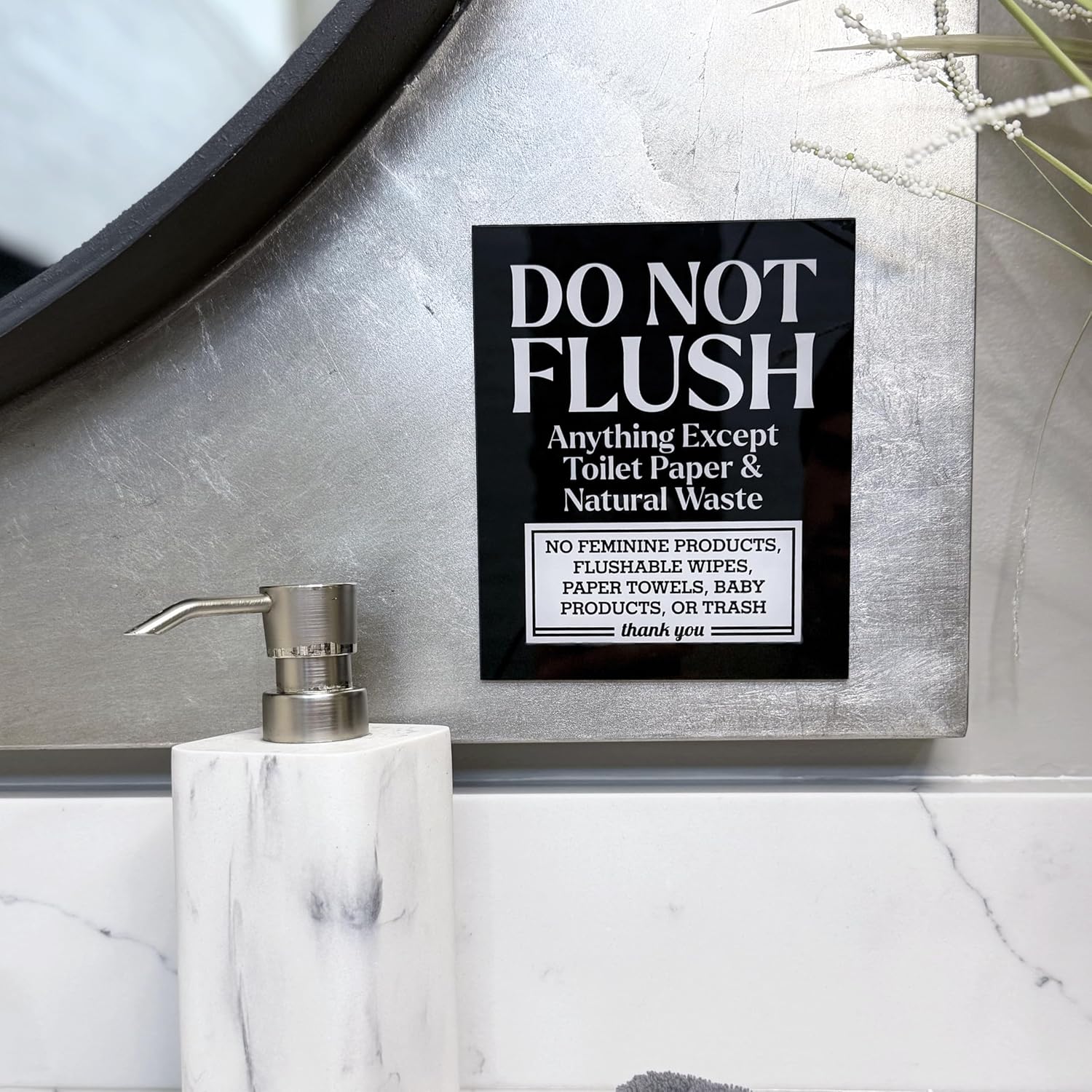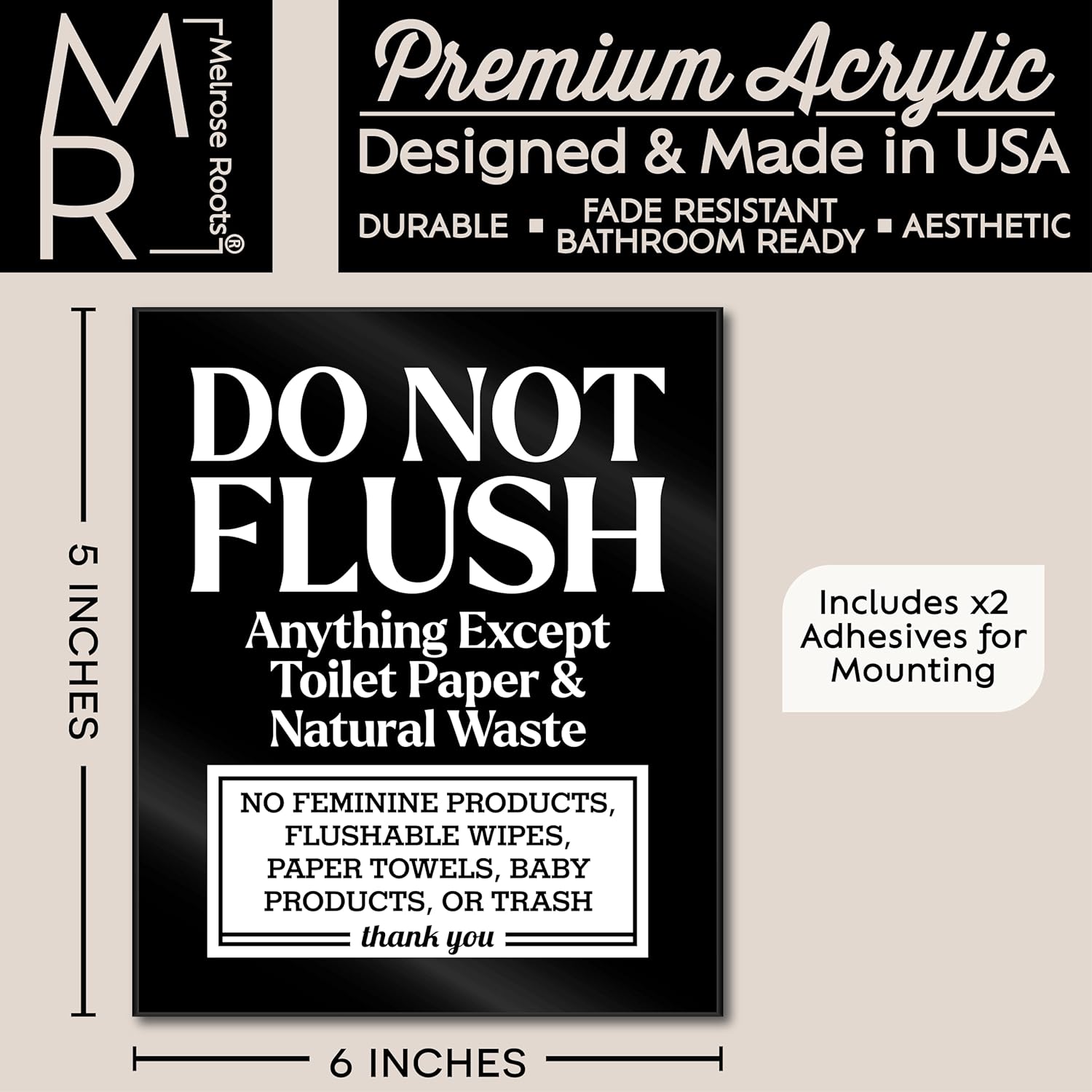 Acrylic Do Not Flush Sign for Bathroom, 5×6 Please Do Not Flush Feminine Products Sign, No Flushing Anything Except Toilet Paper Signs No Flushable Wipes, Air bnb Essentials for Hosts, USA Made