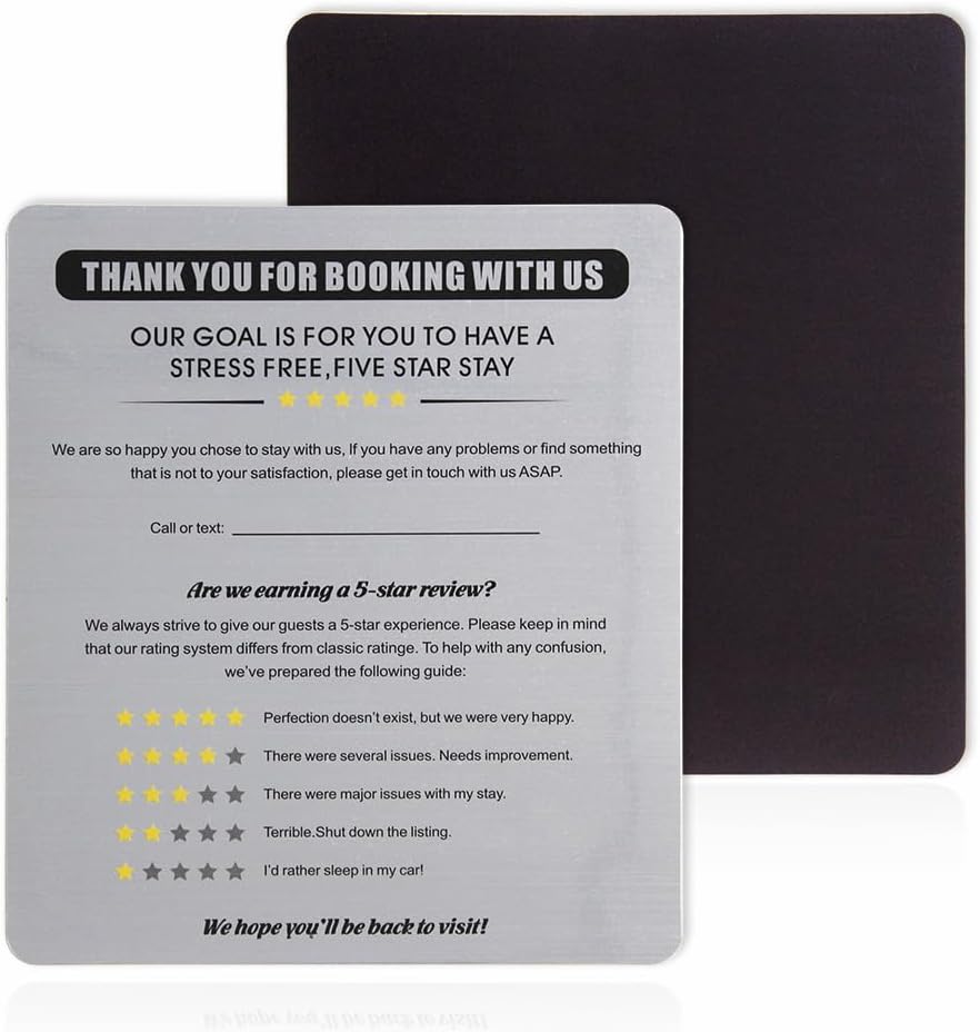 Airbnb Signs,VRBO Airbnb Essentials for Hosts,5 Star Rating Short Term Rental Review Magnet for Vacation Rental Hosts