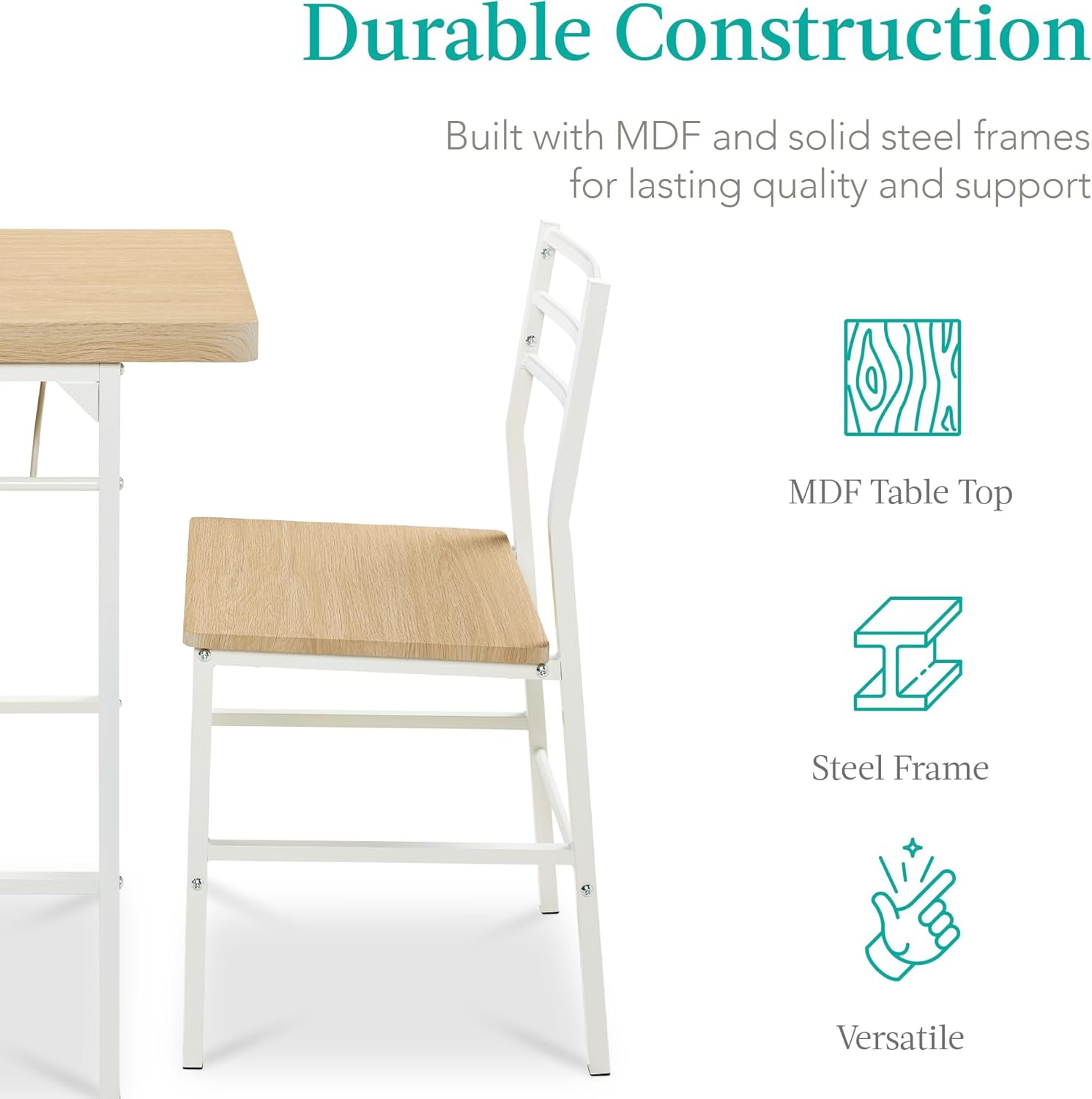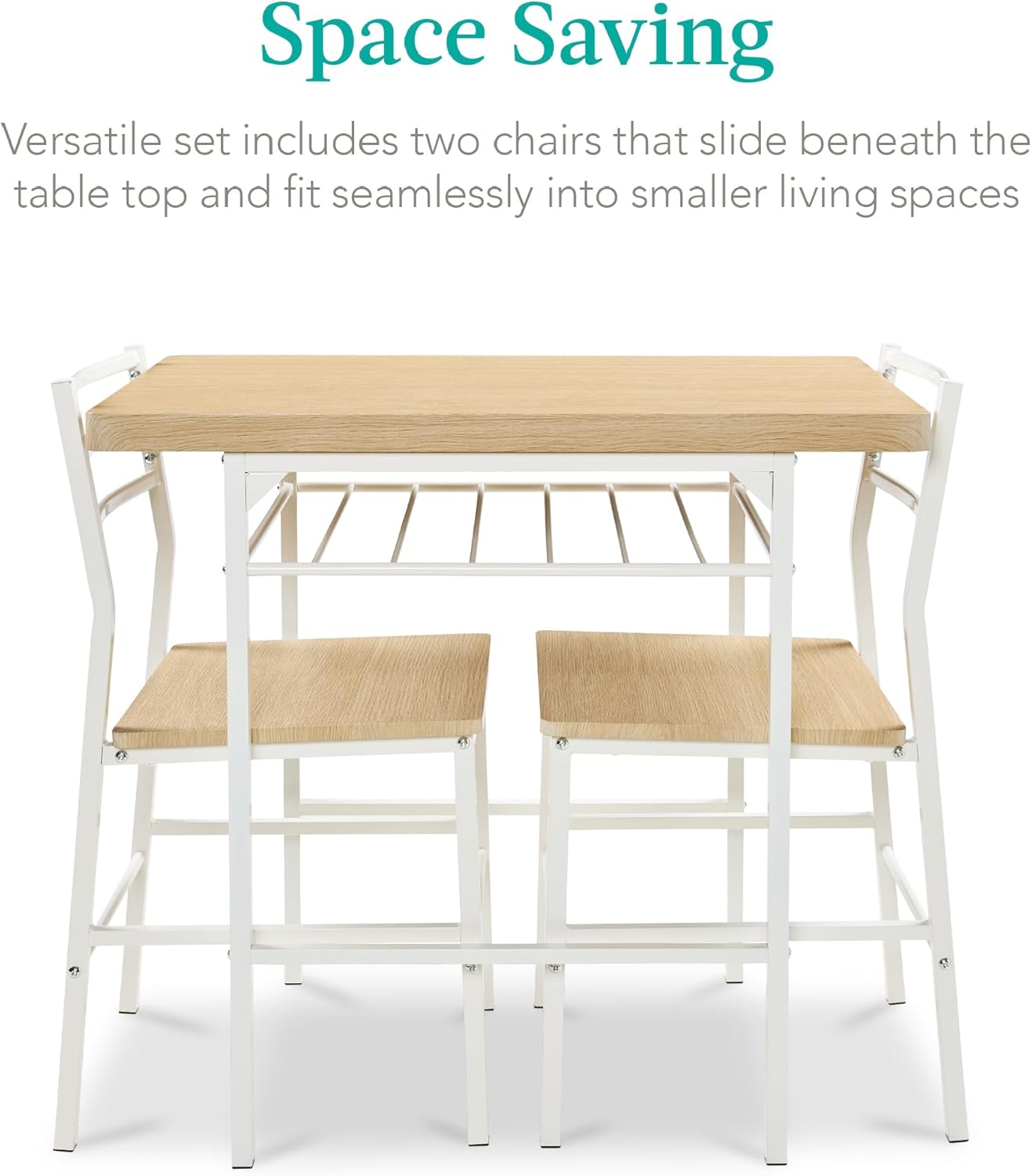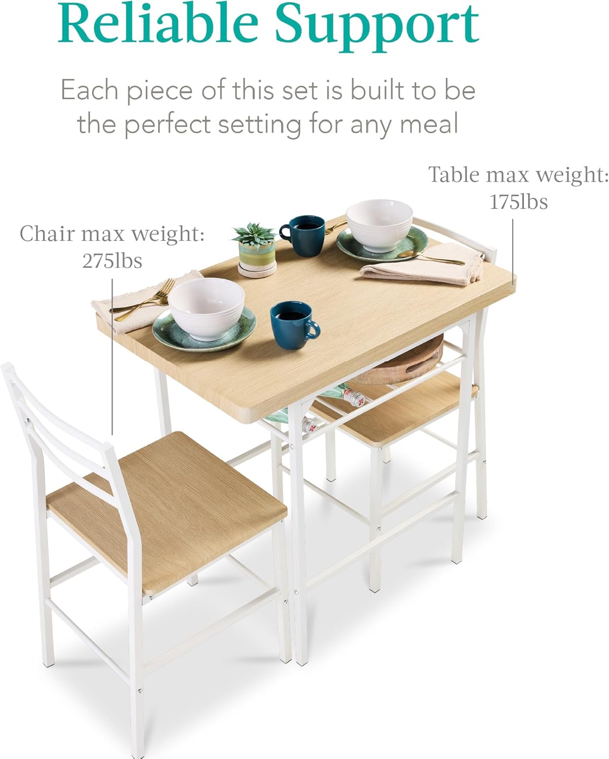 Best Choice Products 3-Piece Modern Dining Set, Space Saving Dinette for Kitchen, Dining Room, Small Space w/Steel Frame, Built-in Storage Rack – Natural/White