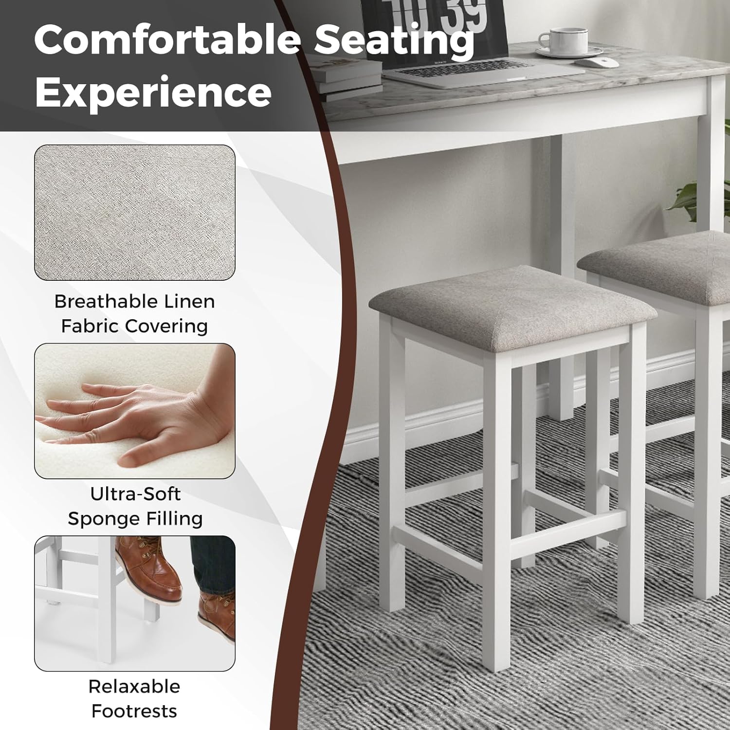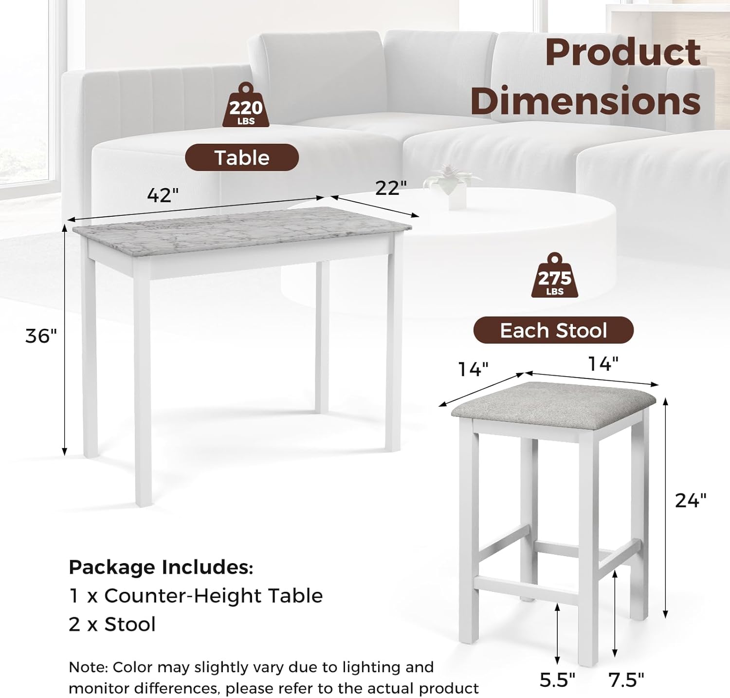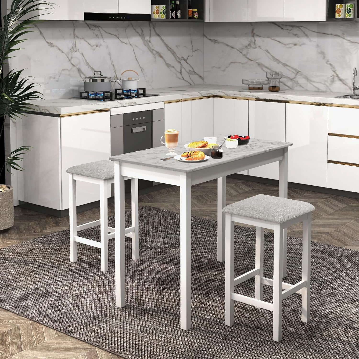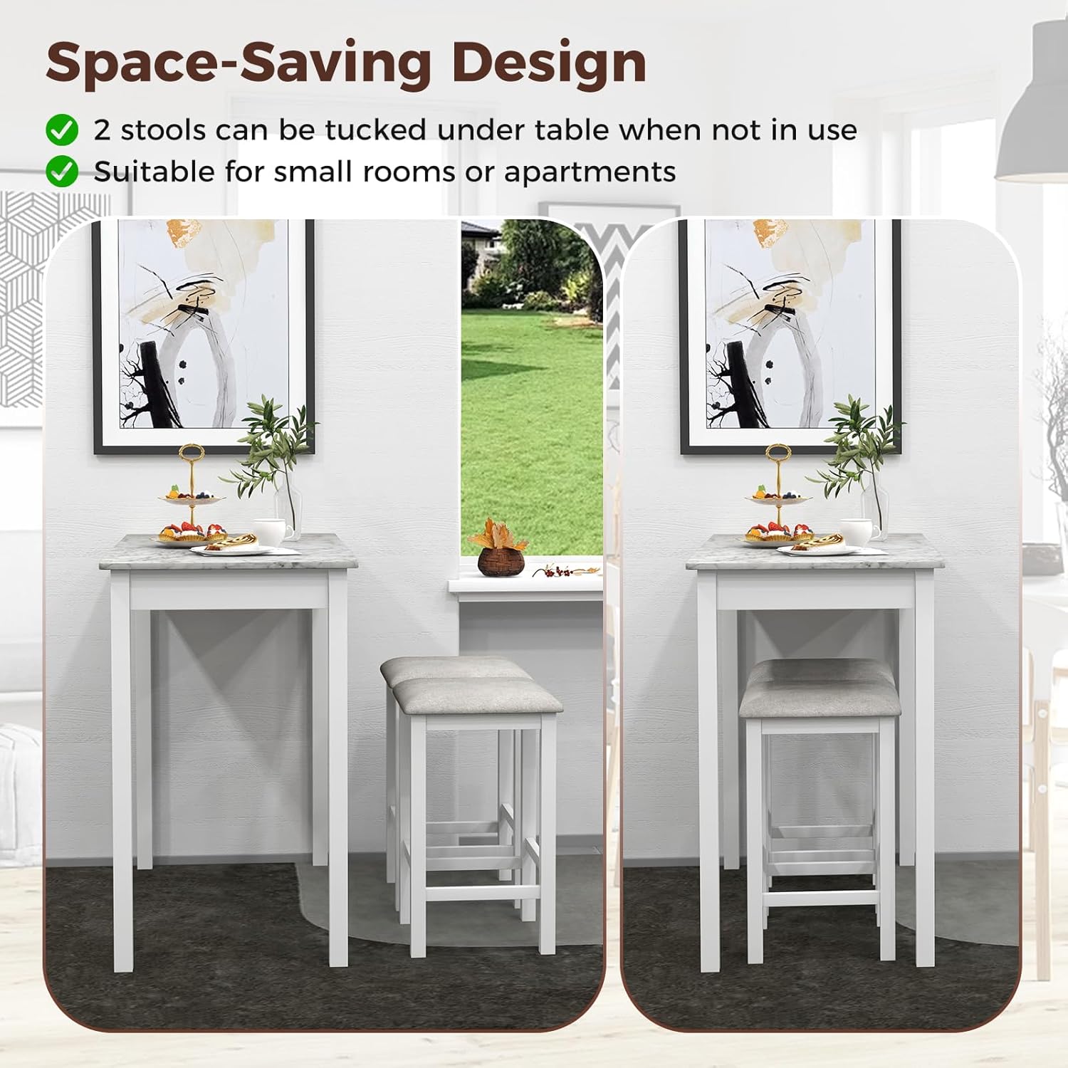 Giantex 3-Pieces Dining Table Set for 2, Counter Height Table with 2 Bar Stools, Wood Legs, Dinette Set for Small Space, Breakfast Nook, Kitchen, Dinner (White/Grey)