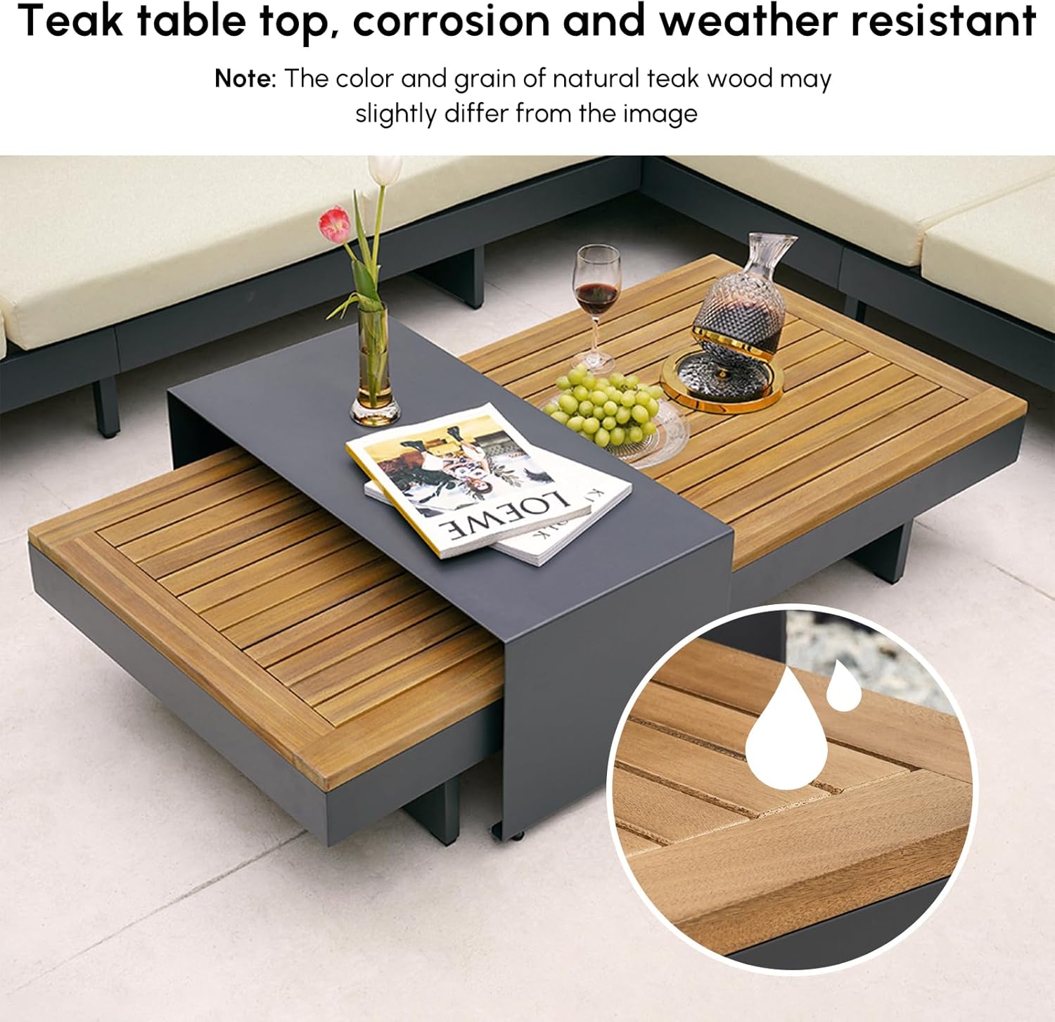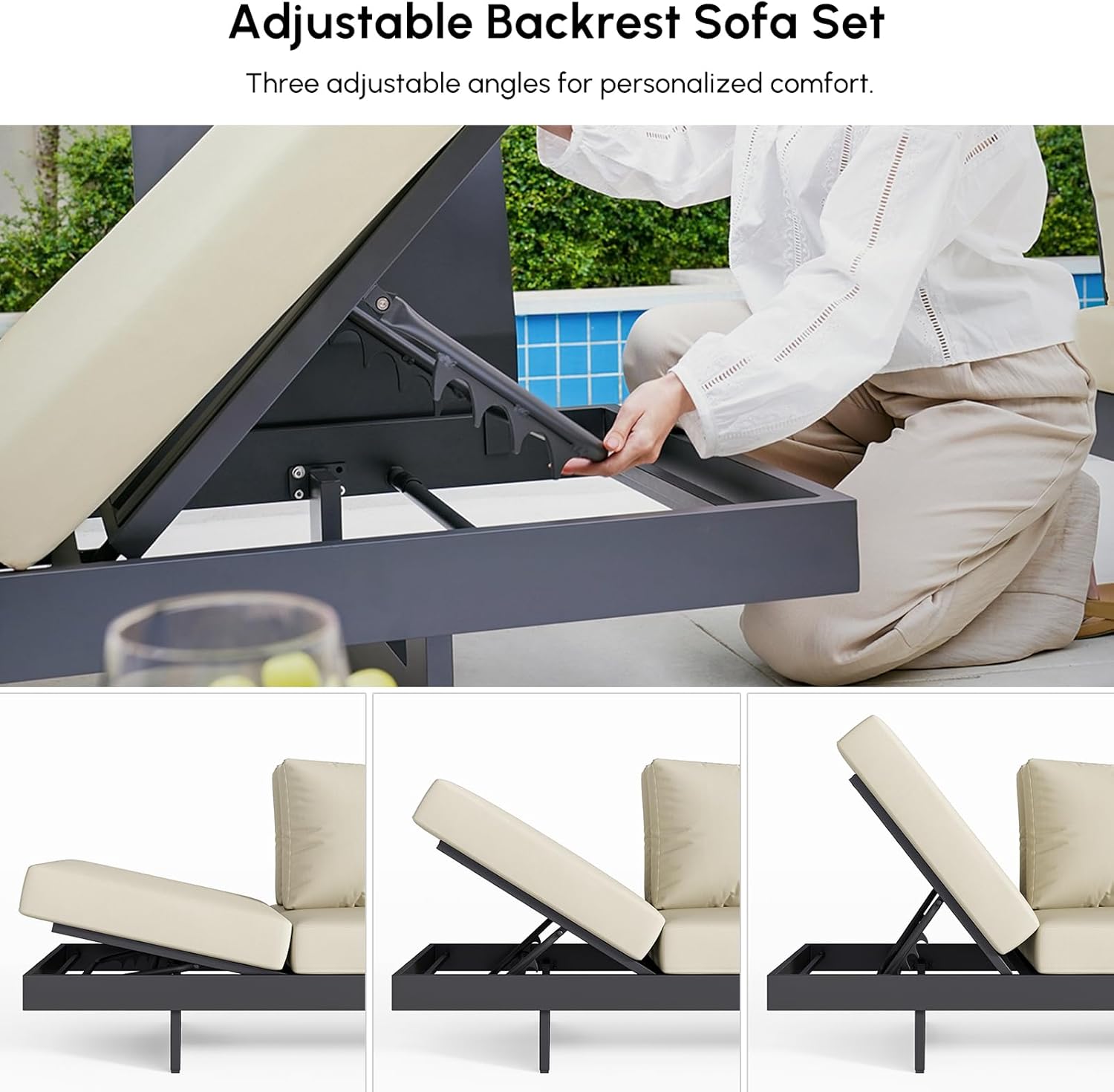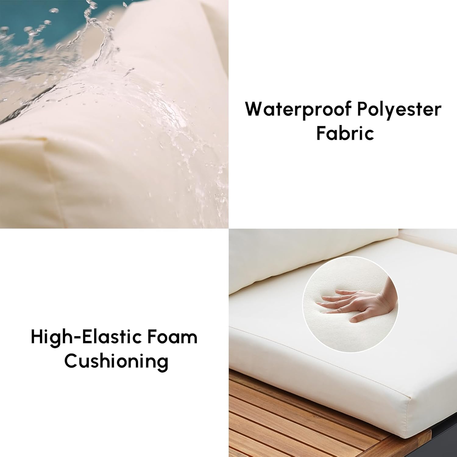 homary 6 Piece Aluminum & Teak Outdoor Sofa Set, Patio Sofa Seat L-Shaped Outdoor Sectional Sofa Set with Adjustable Backrests, Waterproof, Fade Resistant Cushions Ideal for Patios & Balconies,Beige