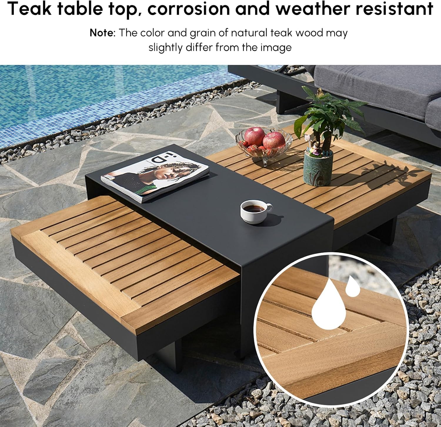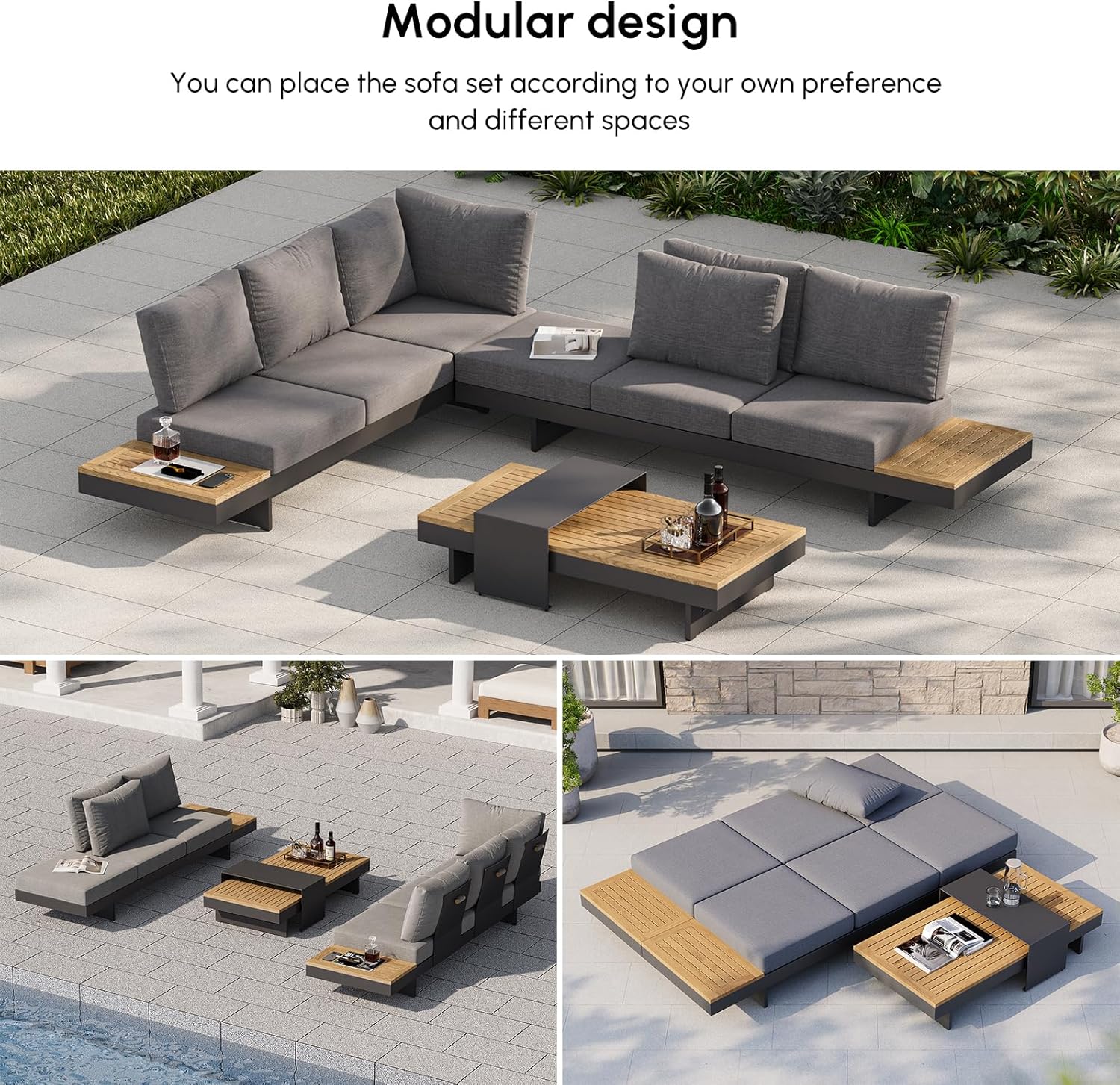 homary Outdoor Conversation Sets, 6 Piece Aluminum & Teak Patio Sectional Sofa Set with Adjustable Backrests, Waterproof Cushions, Ideal for Patios & Balconies | Outdoor Materials, Fade Resistant, Modular design