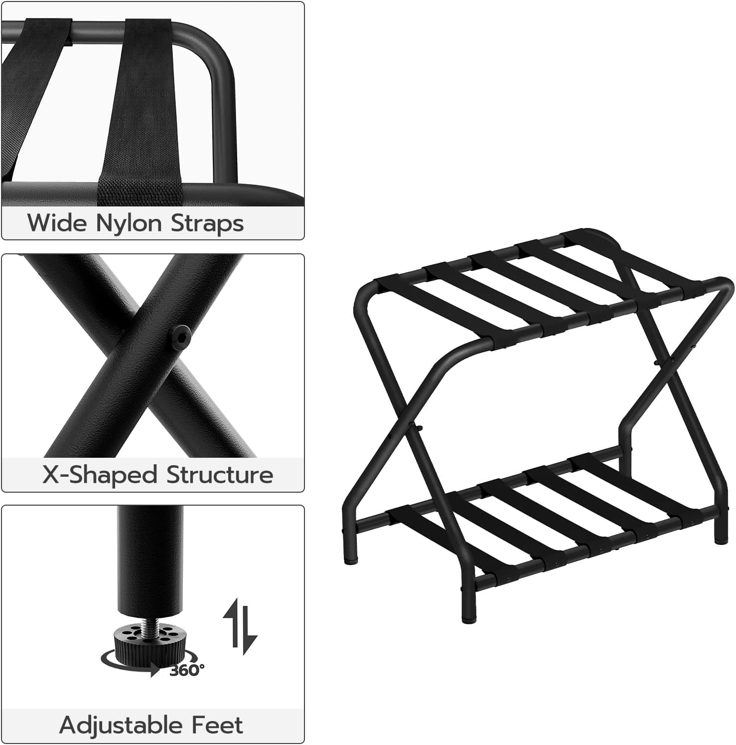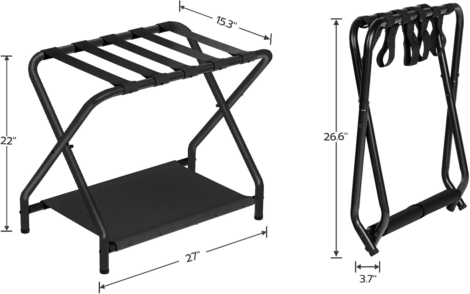 HOOBRO Luggage Rack, Folding Suitcase Stand with Fabric Storage Shelf for Guest Room, Bedroom, Hotel, Holds up to 100 lb, 27 x 15.3 x 22 Inches, Space Saving, Black BK04XL01