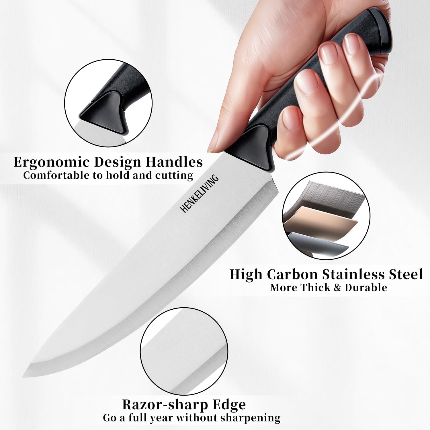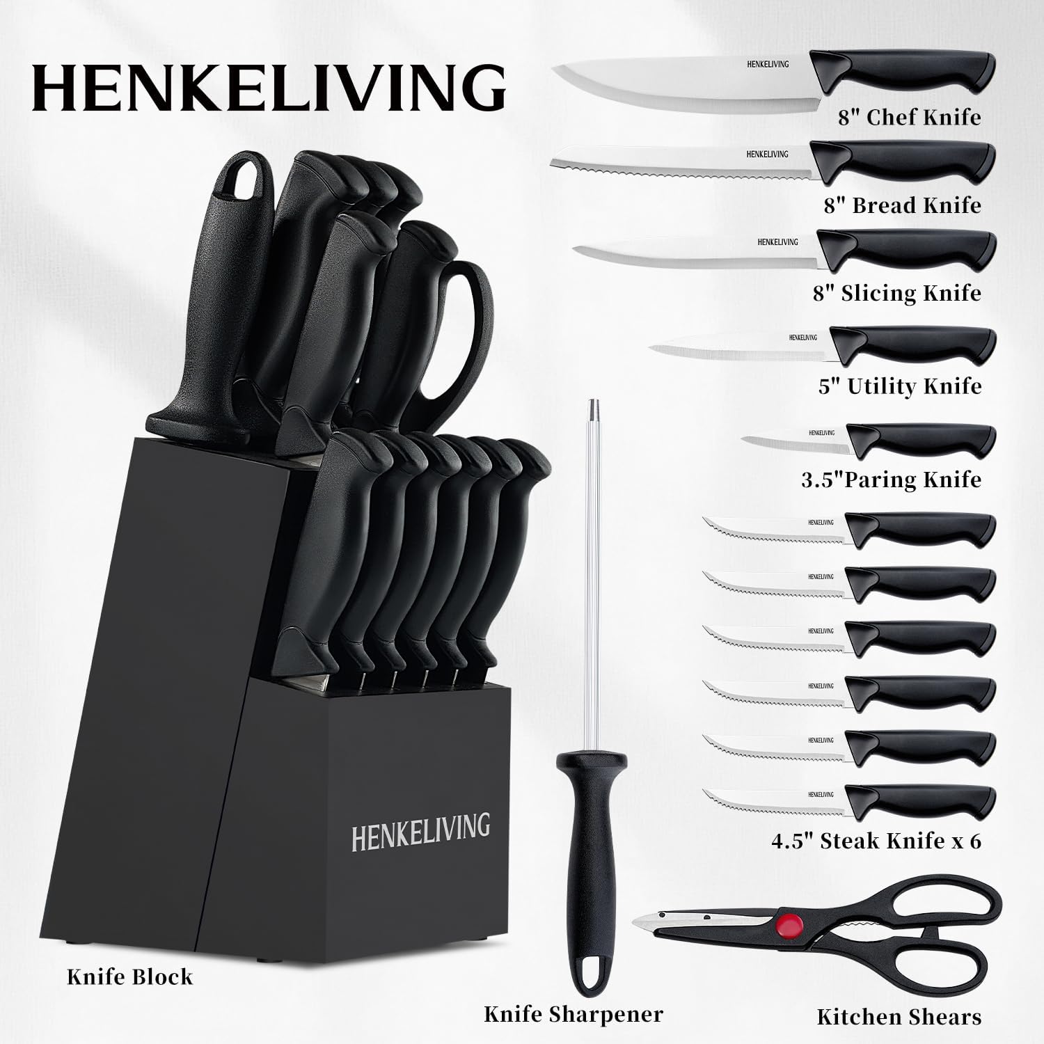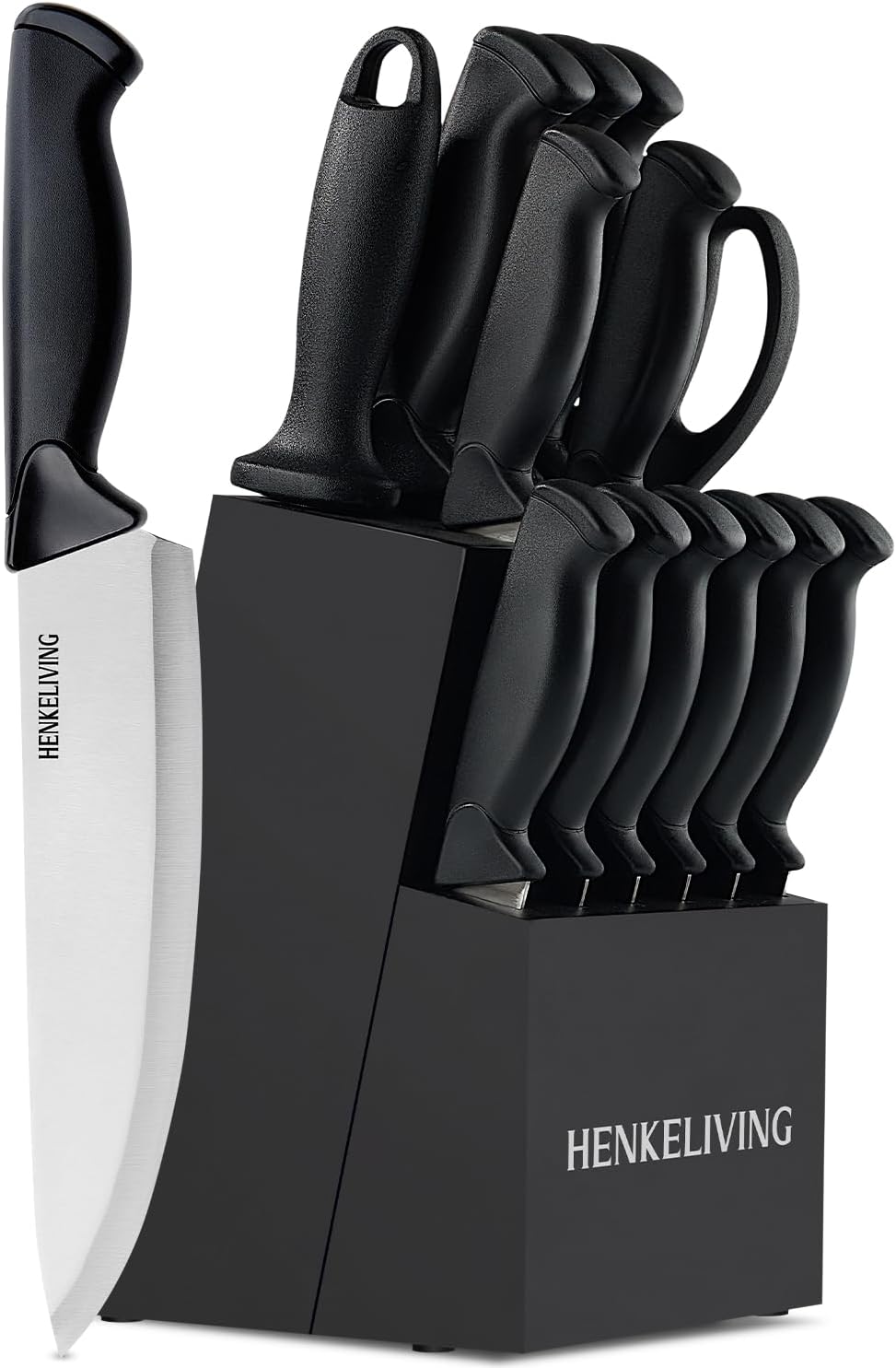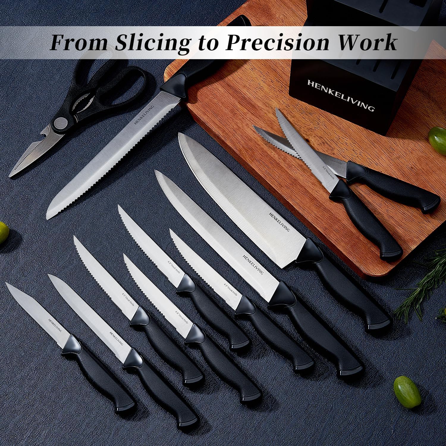 Knife Set, 14-Piece Kitchen Knives Set with Block, German High Carbon Stainless Steel, Ergonomic Non-Slip Handles, BlackSilver