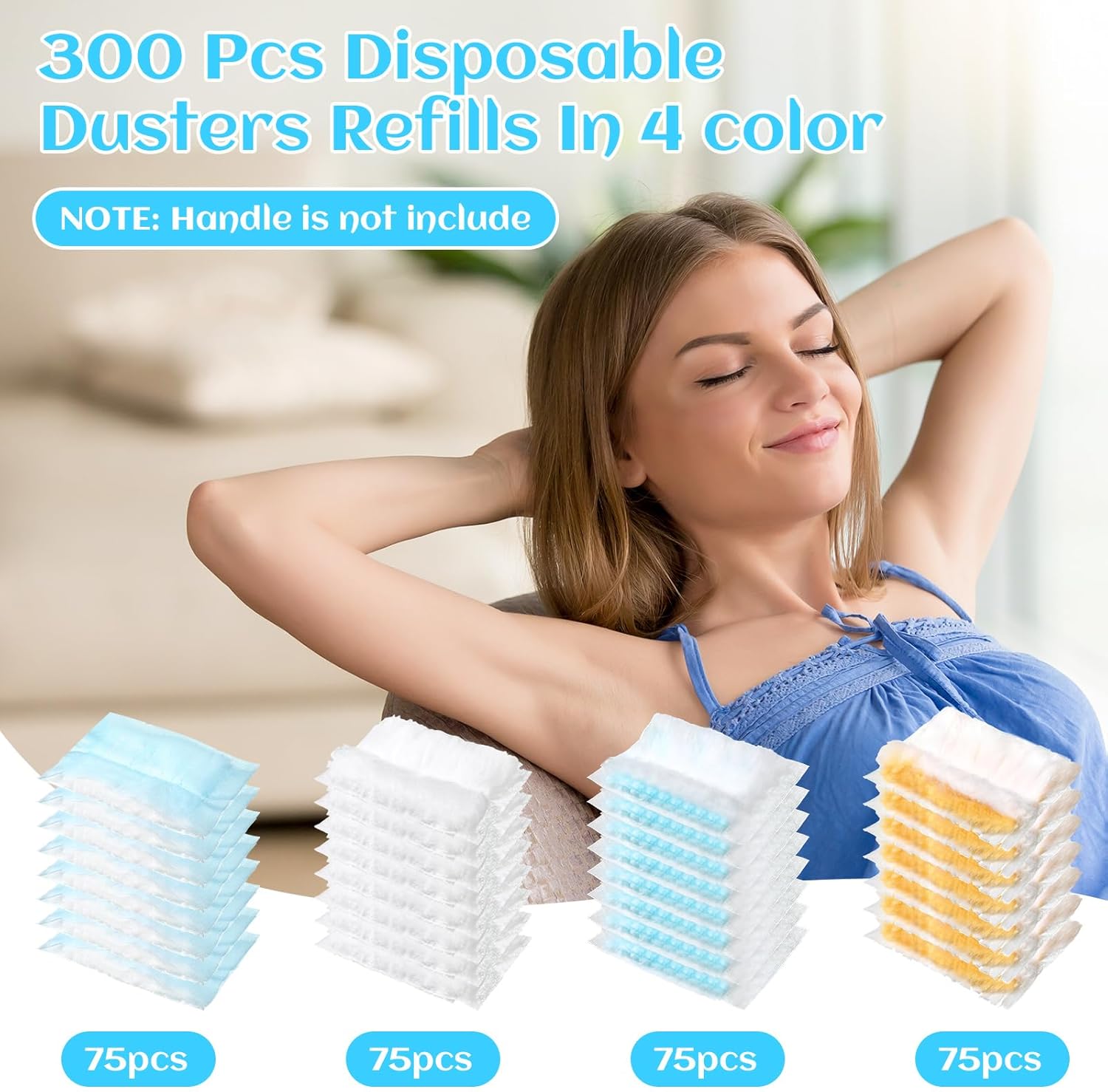 Mimorou 300 Pcs Disposable Dusters Refills Bulk Heavy Duty 180° Multi Surface Replacement Dusters for Cleaning Ceiling Fan with Microfibers Unscented (Light Colors)