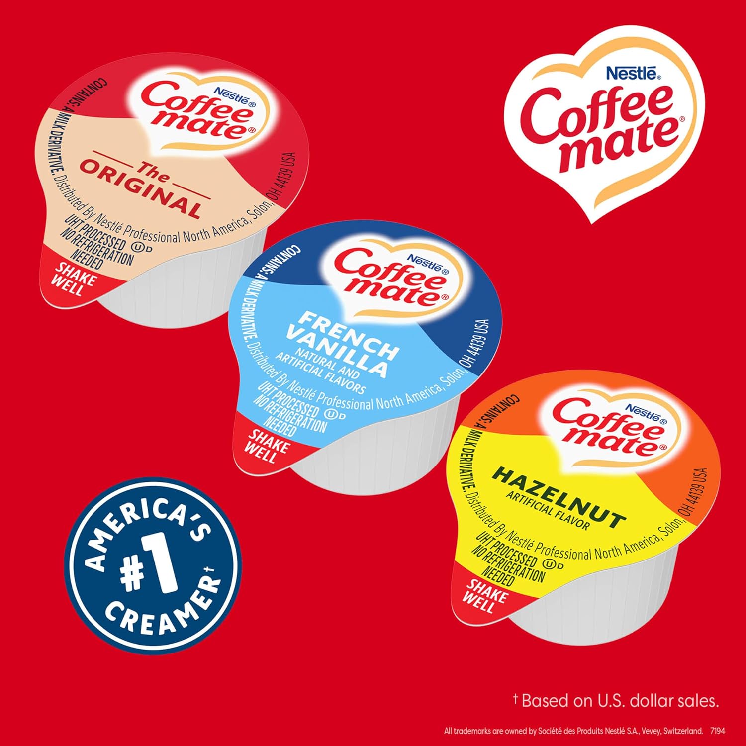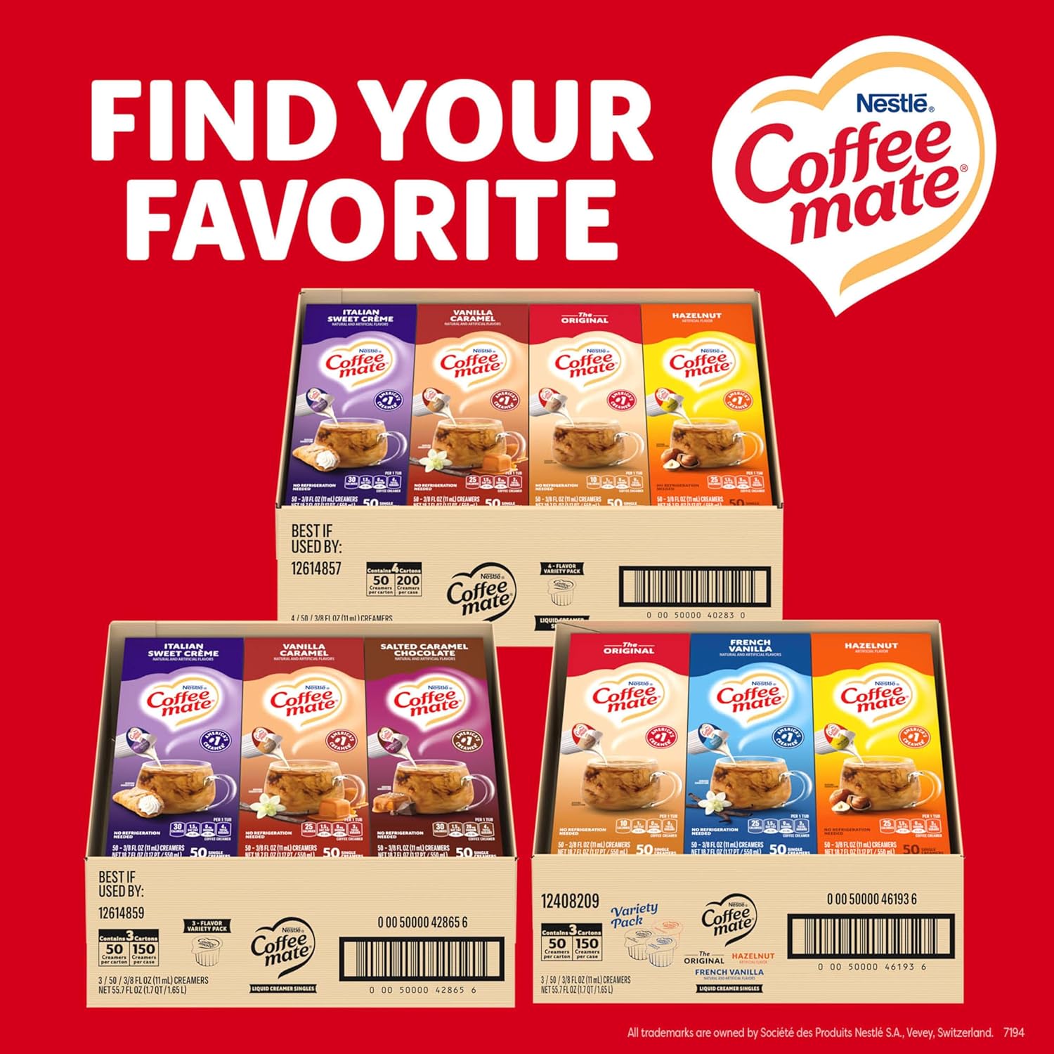 Nestle Coffee mate Creamer Singles Variety Pack, Original, French Vanilla, Hazelnut, Non Dairy, No Refrigeration, 150 Count (Pack of 3)