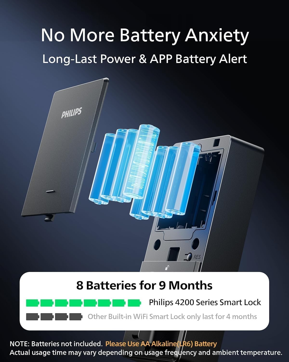 Philips WiFi Keypad Door Lock with Handle, Built-in WiFi, APP Remote Control, Voice & Fingerprint Unlock, Smart Locks for Front Door with Auto Lock, Digital Front Door Lock Set, Keyless Entry Deadbolt