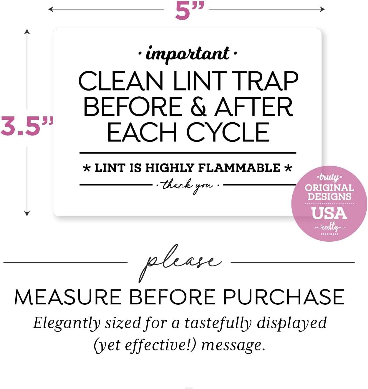 Reilly Originals 3.5×5 Inch Designer Magnet, Clean Lint Trap Before & After Use ~ Designer Graphics (White)