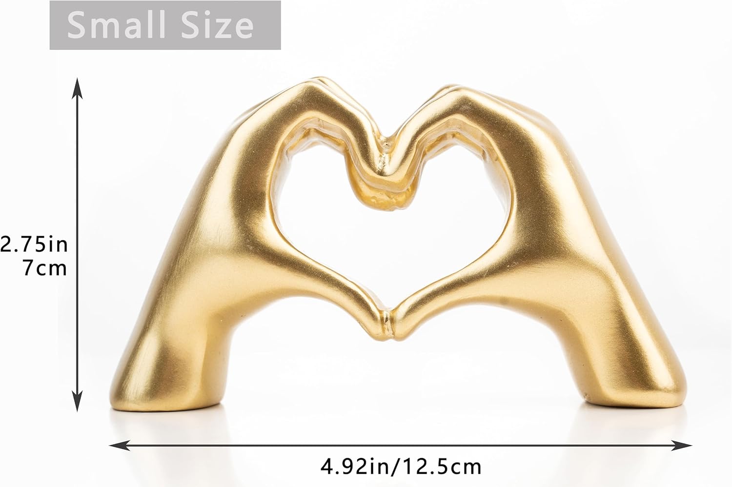 Small Heart Hands Sculpture Decor for Living Room Bedroom Bookshelf Coffe Table and Office Display, Love Finger Statue Modern Aesthetic Home Decor, Unique Gift for Wedding Christmas Birthday (Gold)