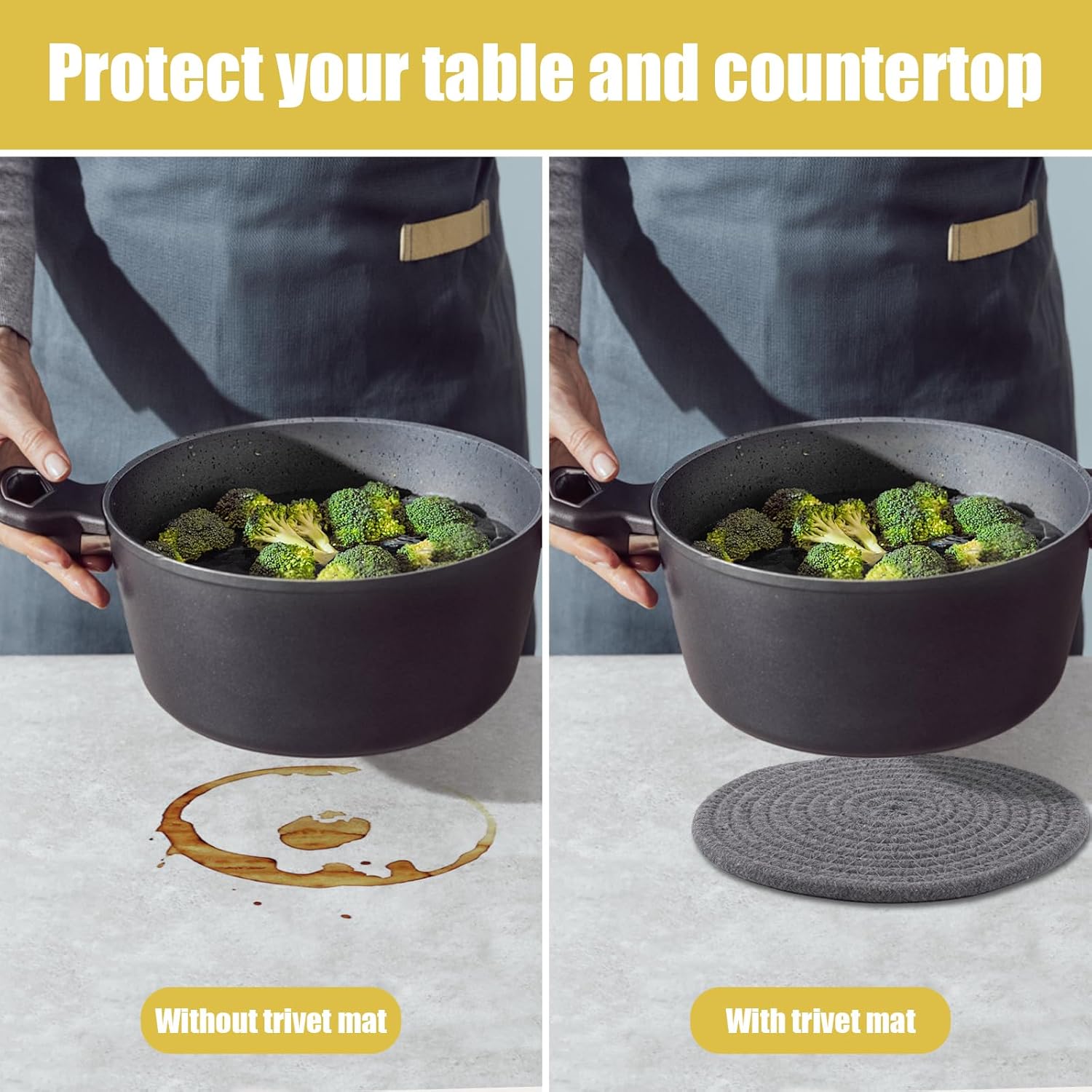Trivets for Hot Dishes, Hot Pads for Kitchen, 7” Trivets for Hot Pots and Pans, Pot Holders for Kitchen, Pot Holders Heat Resistant 4-Pcs, Kitchen Essentials for New Home