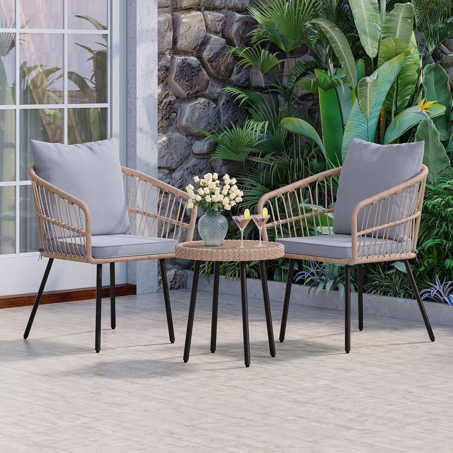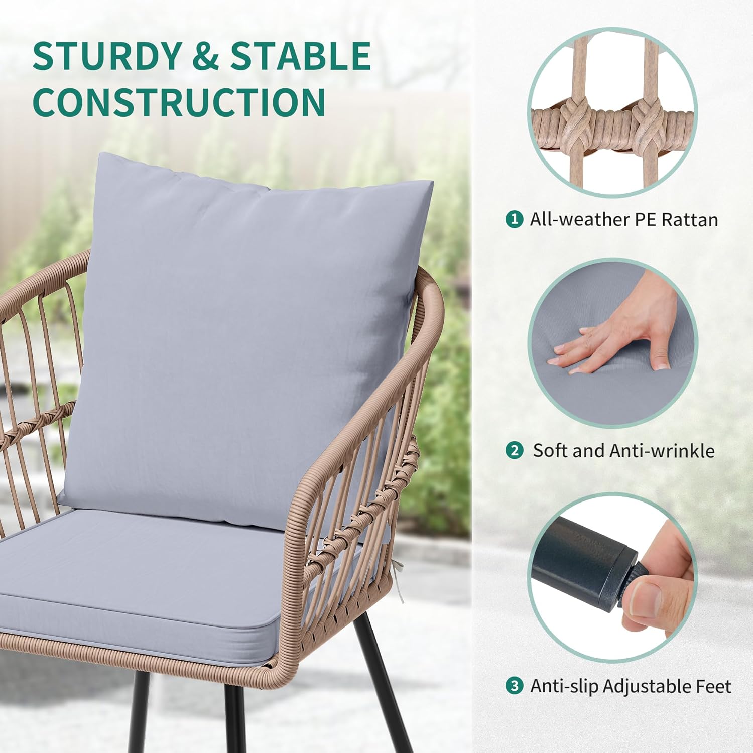 YITAHOME 3 Pieces Outdoor Bistro Set, All-Weather Wicker Patio Furniture Set, Rattan Conversation Set with Table and Chair for Balcony, Backyard, Pool, Porch, Deck – Grey